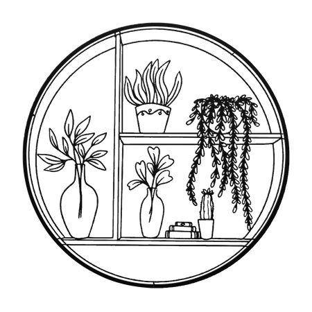 Circle Shelf With Different Plants Design Unique Metal Wall Art